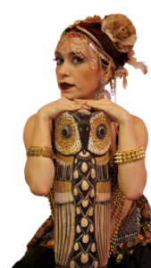 Pioneira no Estado do ES na Dança do Ventre com 33 anos de experiência. Graduada em Dança e Artes Cênicas, pós graduada em Danças Étnicas, estudante de psicologia, atua na Dança do Ventre como um resgate à dança ritualística e como desenvolvimento integral do feminino.